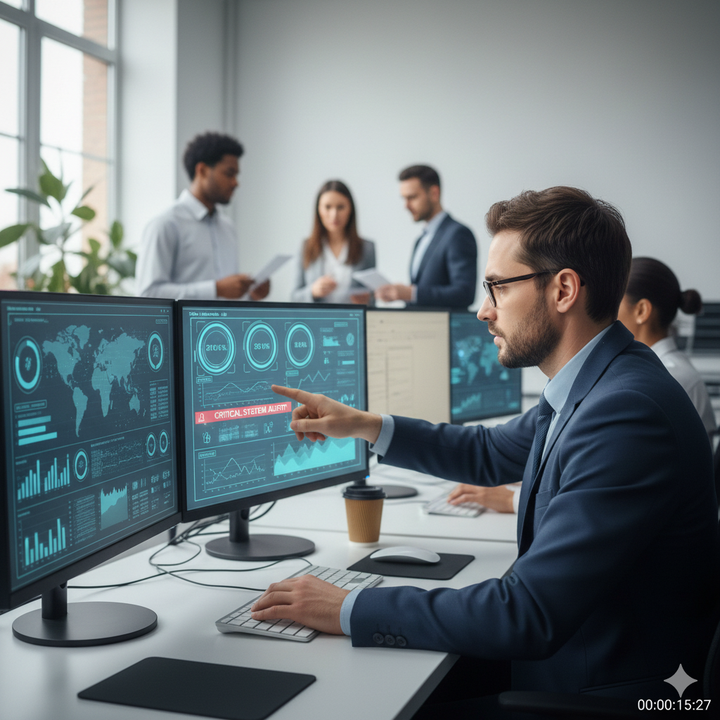Ihre IT-Infrastruktur auf Autopilot überwacht. Durch automatisierte Systemüberwachung mit intelligenten Alarmen sichern Sie einen nahezu unterbrechungsfreien Betrieb. Das Monitoring beobachtet Server, Anwendungen und Geräte rund um die Uhr. Bei Auffälligkeiten – sei es hohe Auslastung, Fehlermeldungen oder Ausfall einer Komponente – schlägt das System proaktiv Alarm und reagiert sogar automatisch. So vermeiden Sie teure Ausfälle und Schlafstörungen beim Admin.